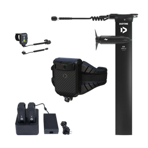 "We designed the Foil Assist to deliver an unmatched riding experience, opening doors to new sensations and disciplines, pushing each rider’s limits, all while preserving the purity and true essence of foiling." Cyril Coste, Foil Assist DeveloperIntroducing the Duotone Foil Assist, an innovative solution that addresses the challenges of existing foil assist systems and eFoil boards. Unlike many products on the market that suffer from added weight and drag from batteries and motors, this cutting-edge system is lightweight and seamlessly integrated, consisting of three fully integrated mast options, a harness with a battery box, and a watch ring remote. This design allows you to enjoy the pure feel of foiling without excess weight in undesirable places by keeping the battery weight close to your body while maintaining a full range of movement. Additionally, the Duotone Foil Assist offers increased torque and thrust, enabling you to get on foil even sooner and use smaller foil sizes. The unique remote design keeps your hands free, making it ideal for paddling, duck-diving, holding a wing, or managing a paddle.